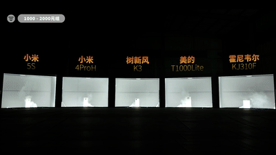 首先是1-2000元组,按照舱内能见度都顺序来排名,树新风K3和美的T1000 Lite要更快,接着是小米5S、小米4 ProH,最后姗姗来迟的是霍尼韦尔KJ301F。