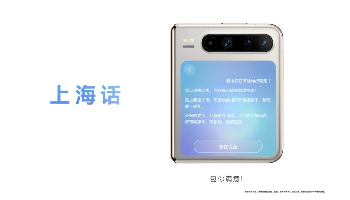 听到小艺用熟悉的语调回应你时,那种亲切感是标准普通话无法替代的。emo时用家乡话跟小艺唠两句,瞬间获得“赛博归属感”。TA能把你的塑料普通话、任性方言,统统接住并反弹回最地道的味道。