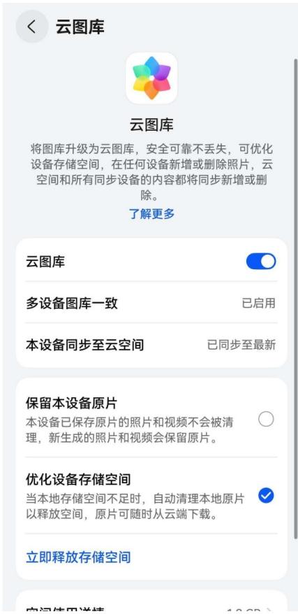 云图库的“优化设备存储空间”功能简直是救星,开启后,系统会自动把本地照片视频都同步到云端,还会自动把本地不常用的一些高清原图替换为小尺寸的预览。这样一来,不仅释放了本地空间,而且在平板、PC等设备上也能随时随地查看。这下真的可以放肆拍、任性存了,真正“图”个轻松。