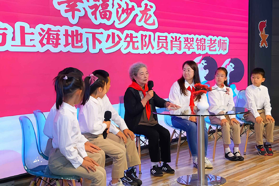 那时候,正值“白色恐怖”时期,地下少先队员们冒着危险,与反动当局斗智斗勇。为了在现今的思南路、茂名南路一带张贴宣传标语,肖奶奶和其他队员五人一组,在夜深人静之际开展行动,她人最小,负责拎糨糊桶,一个男队员爬到树上瞭望放哨,三个个子高一些的女队员则负责张贴。有一次,肖奶奶机智地溜进了静安寺四姊妹舞厅,因为她人小,把门的都没发现她,当舞客们起身离座跳起黑灯舞时,她立刻趁着黑灯瞎火,将藏在衣服里的传单一一放在了座椅上,传单里写着的是解放区的胜利捷报。