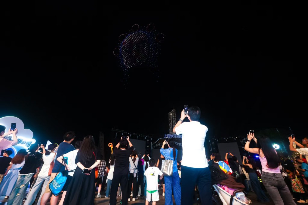 游客观看无人机表演。澎湃新闻记者 朱伟辉 图