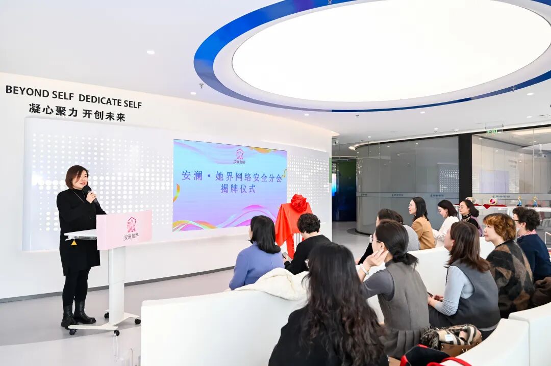 现场,安澜·她界网络安全分会正式揭牌,标志着这一聚焦网络安全领域的女性专业分会正式启航。“安澜”是对网络空间清朗有序的期许,“她界”则是为女性在网络安全领域搭建的成长舞台——这一分会核心内涵,精准契合了普陀区推进网络安全治理与女性人才发展的双重需求。分会明确四大核心职能,每一项都紧扣区域发展实际:从促进技术、管理、政策层面的专业交流,到开展技能培训与女性领导力建设;从实施女大学生职场导师计划、推进公众网络安全科普,到展现行业女性形象、推动平等多元的行业生态构建,更将联动促进会其他八个分会实现跨界融合,让“她力量”在协同合作中绽放更大价值。