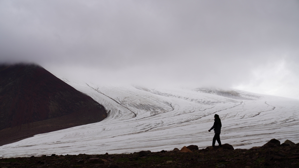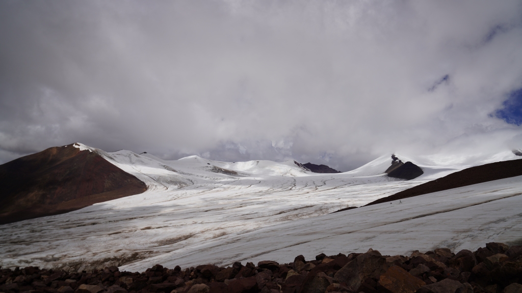 我和徐强强望着冬克玛底冰川,一同直观感受到,今年的冰川变得更黑、更脏了。
